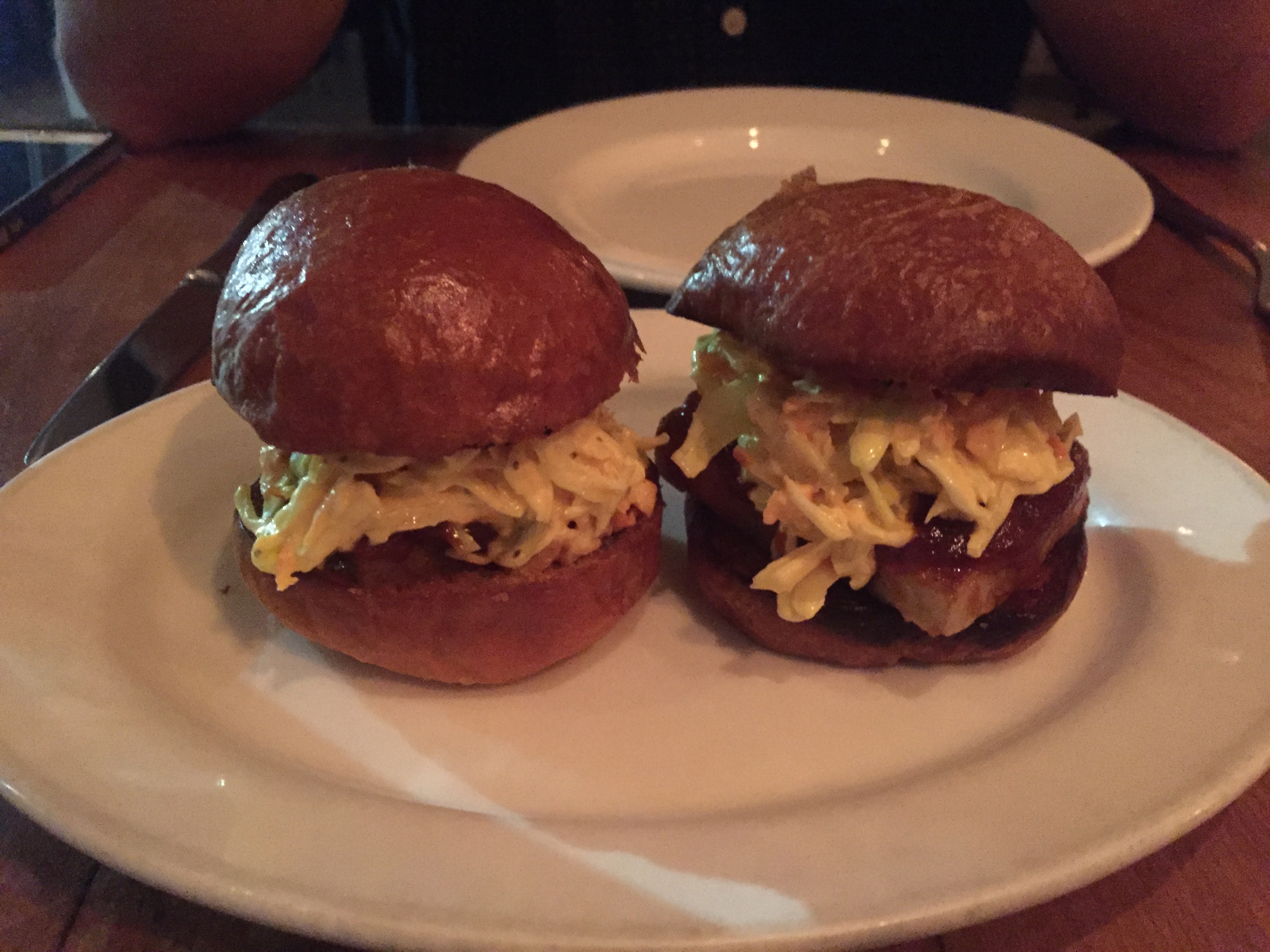 We also tried two sandwich dishes that were marvelous! The first was the barbeque (their spelling) pork belly sandwiches served with slaw. The meat was “melt in your mouth” delicate, the BBQ had a wonderful punch and the slaw balanced the dish out with a coolness and crunch. This dish is becoming pretty common on restaurant menus and often it is good but not great (it is difficult to ruin pork belly, BBQ sauce and bread), but I really thought this was a stand-out for Animal.