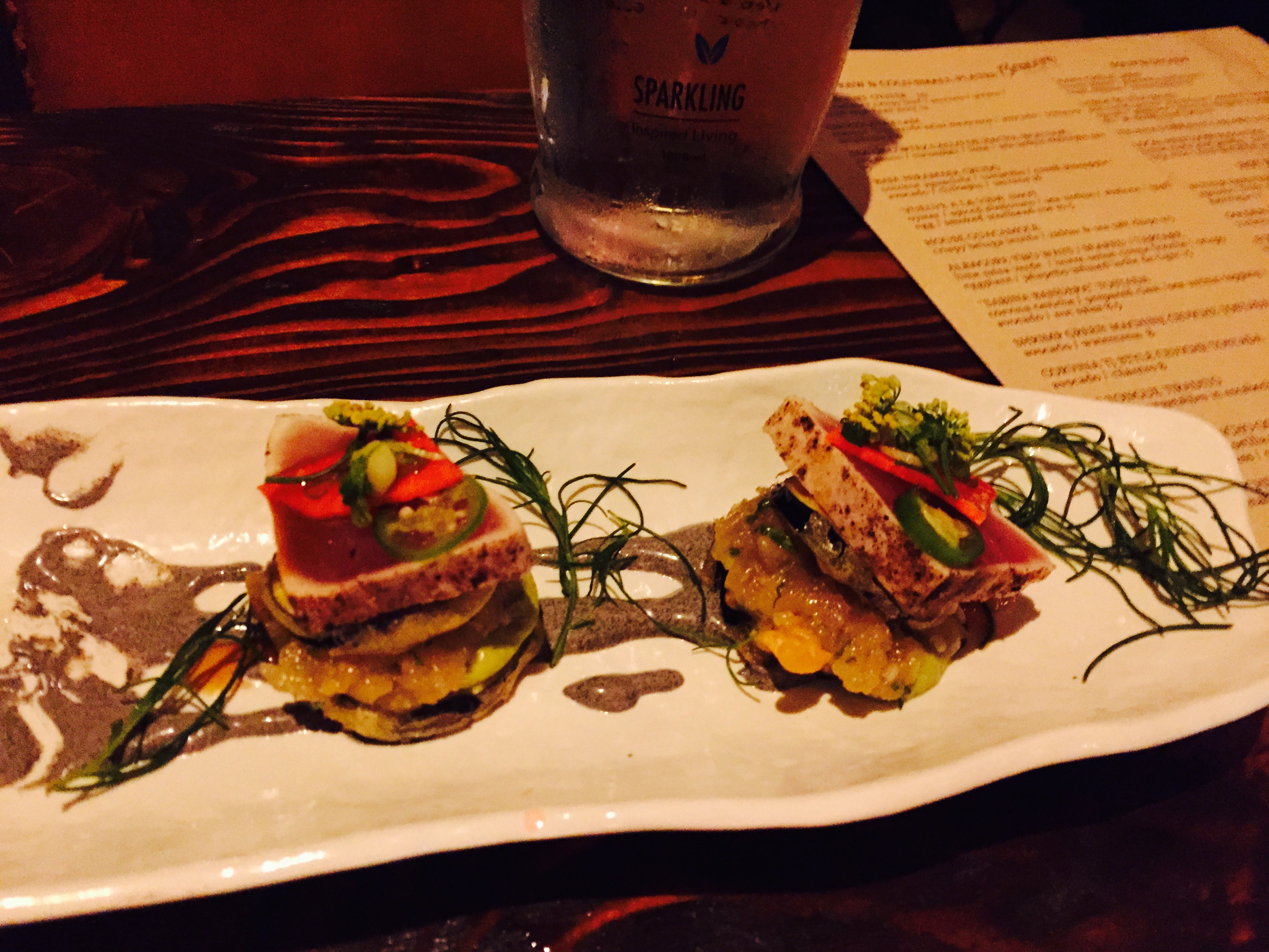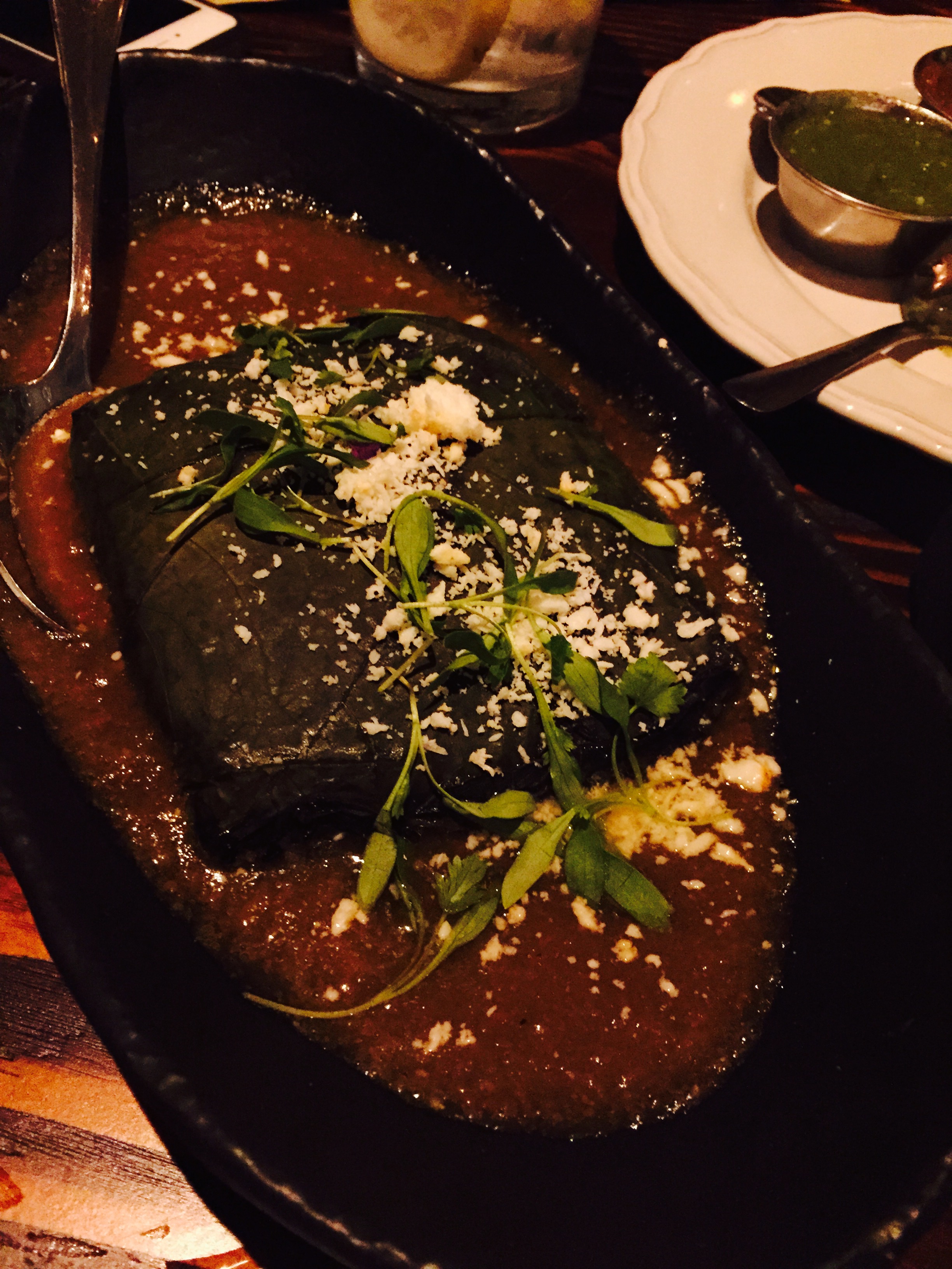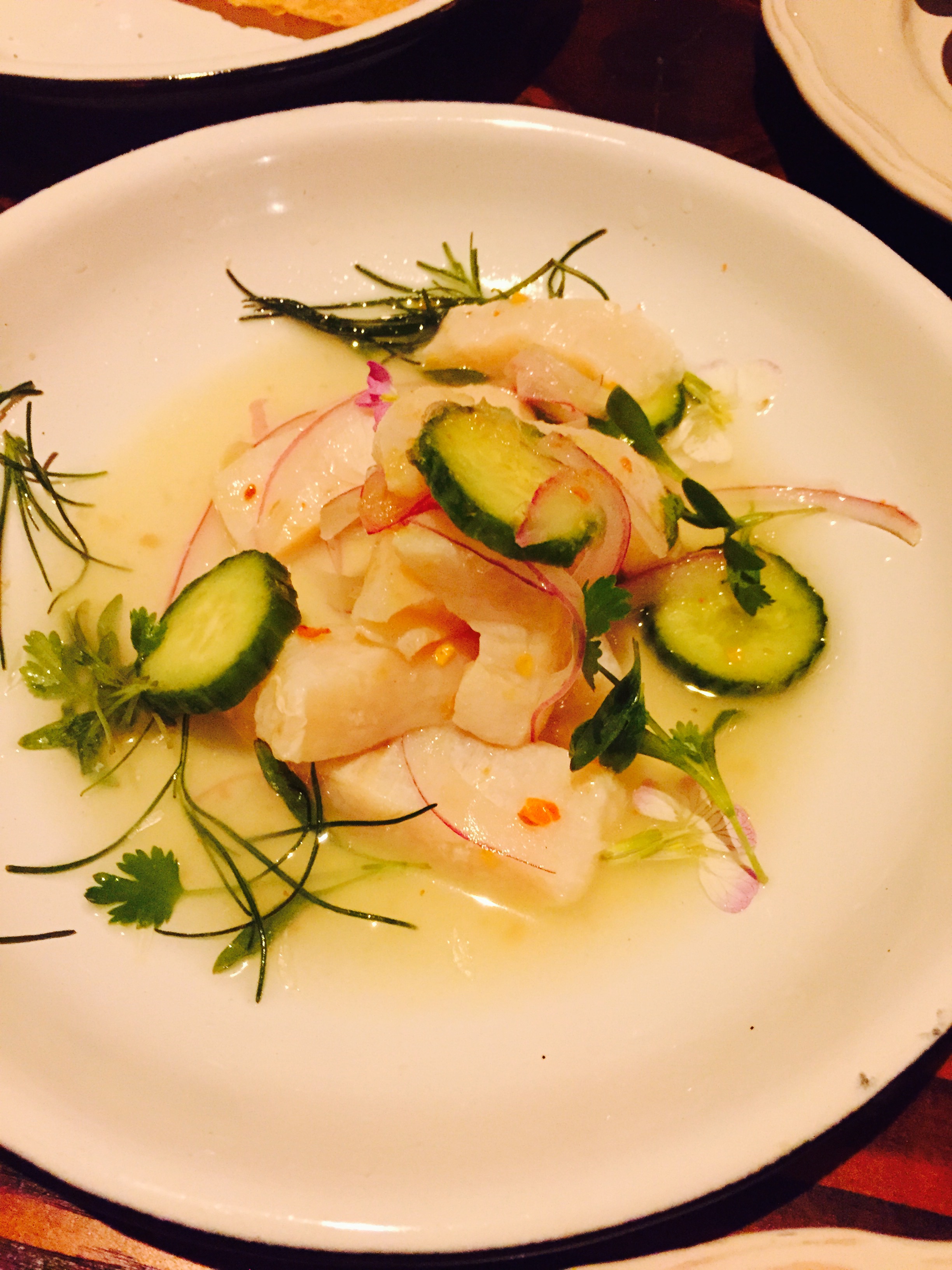 We have tried quite a few items on the menu and some of the standouts were the Albacore Two Ways (Seared and Tartare) [This was one of our favorites!], the Shrimp Green Machine Ceviche Tostada, the Shrimp and Bone Marrow Sopes, the Callo de Hacha (Scallops), and a very interesting take on Griddled Cheese in Hoja Santa (a Mexican herbaceous leaf which is wrapped around the cheese).