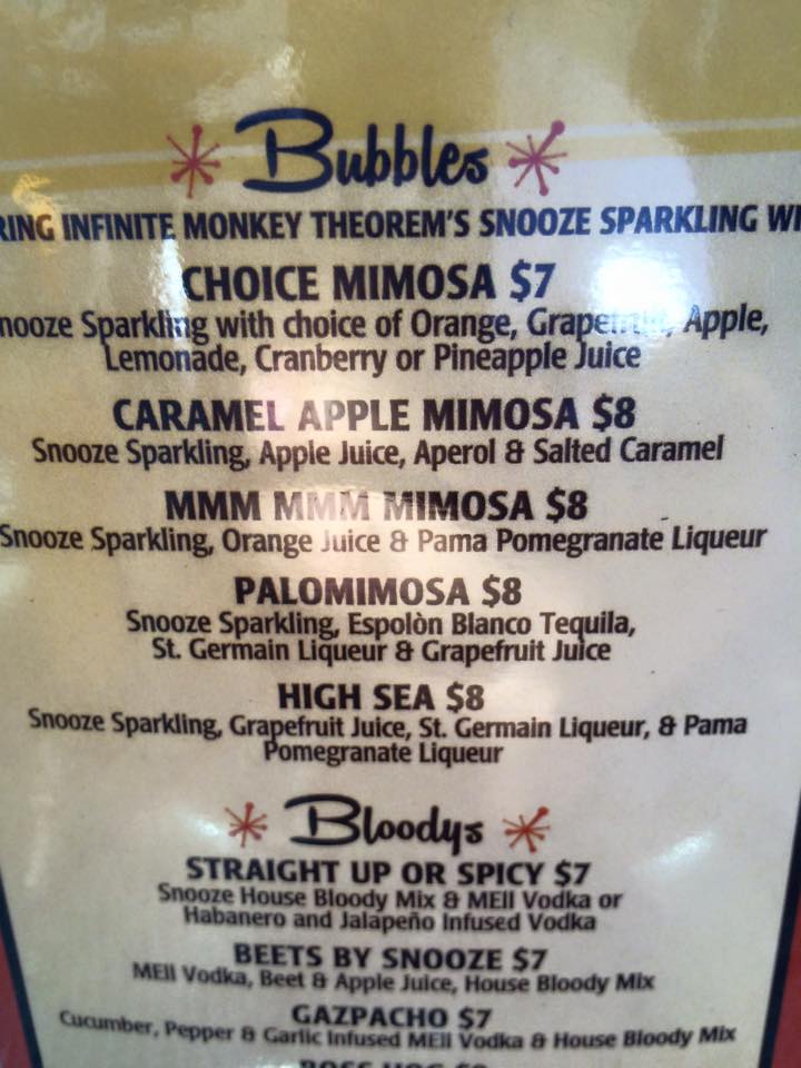 They also have lighter fare, which if that’s what you want you might want to choose a different restaurant, cause it’s all about the carbs and fat here…lol. There’s also their Snooze Spuds deluxe, which is fantastic! Its a lot on a plate, the hash browns, eggs( if you’d like), and two fillings of your choice. I usually go with the goat cheese and caramelized onions and pay a little extra for some cheddar hollandaise.
