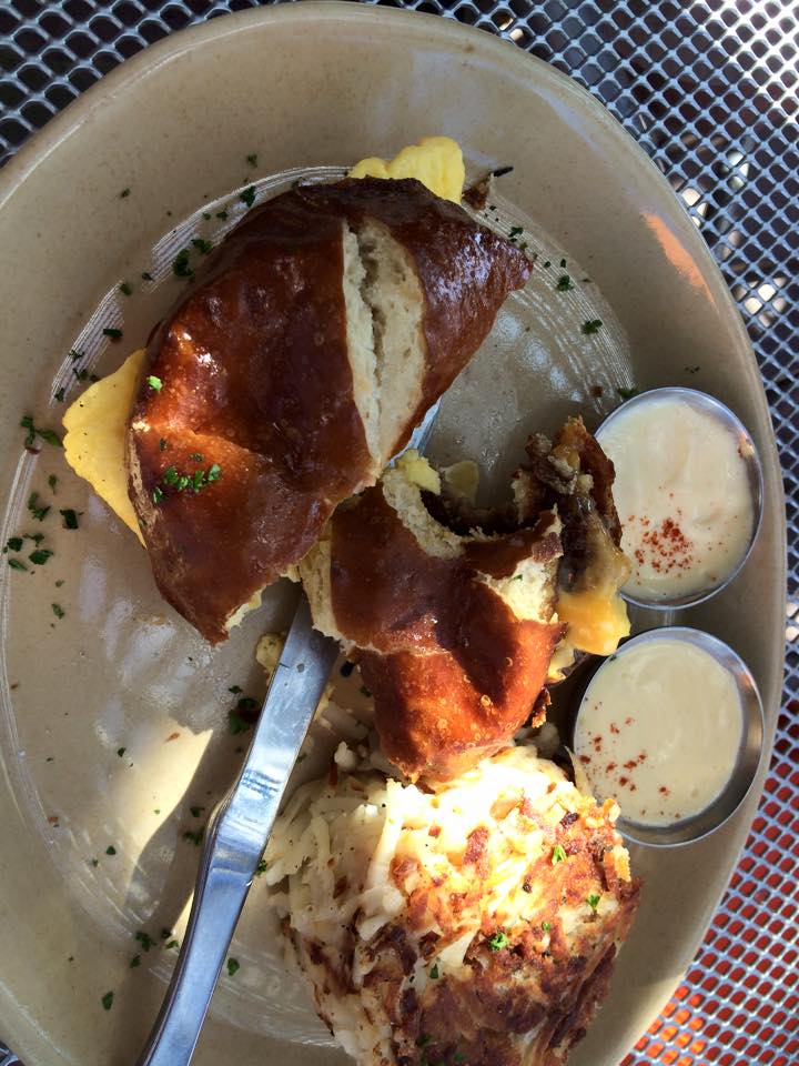 Start off with one of their mimosas, it’s not your champagne and OJ kind, there’s one with Pama which is my favorite. Or try one of their bloody mary’s , which have just the right amount of spice to them. I tend to be a creature of habit sometimes, especially if I like a particular item on the menu. Saying that, I love the Sandwich I Am. The pretzel bun is delicious and comes out nice and buttery, the sausage has a great bite from the spices they use in it, the eggs are pretty fluffy, and that cheddar hollandaise is something I would fill my tub up with and bathe in. I also, almost always, get the pineapple upside down pancake. I did not on this visit because Andy got the french toast, but the pancake is something you should definitely try. Chunks of pineapple, fluffy pancake batter, cinnamon butter, and vanilla creme anglaise all come together in a symphony of flavors in your mouth that is just awesome. Don’t forget to ask for the flavor of the day of the pancakes, they usually have some really great choices. Plus you can also do flights of pancakes, so you can choose up to 3 and try a few to figure out your favorite.