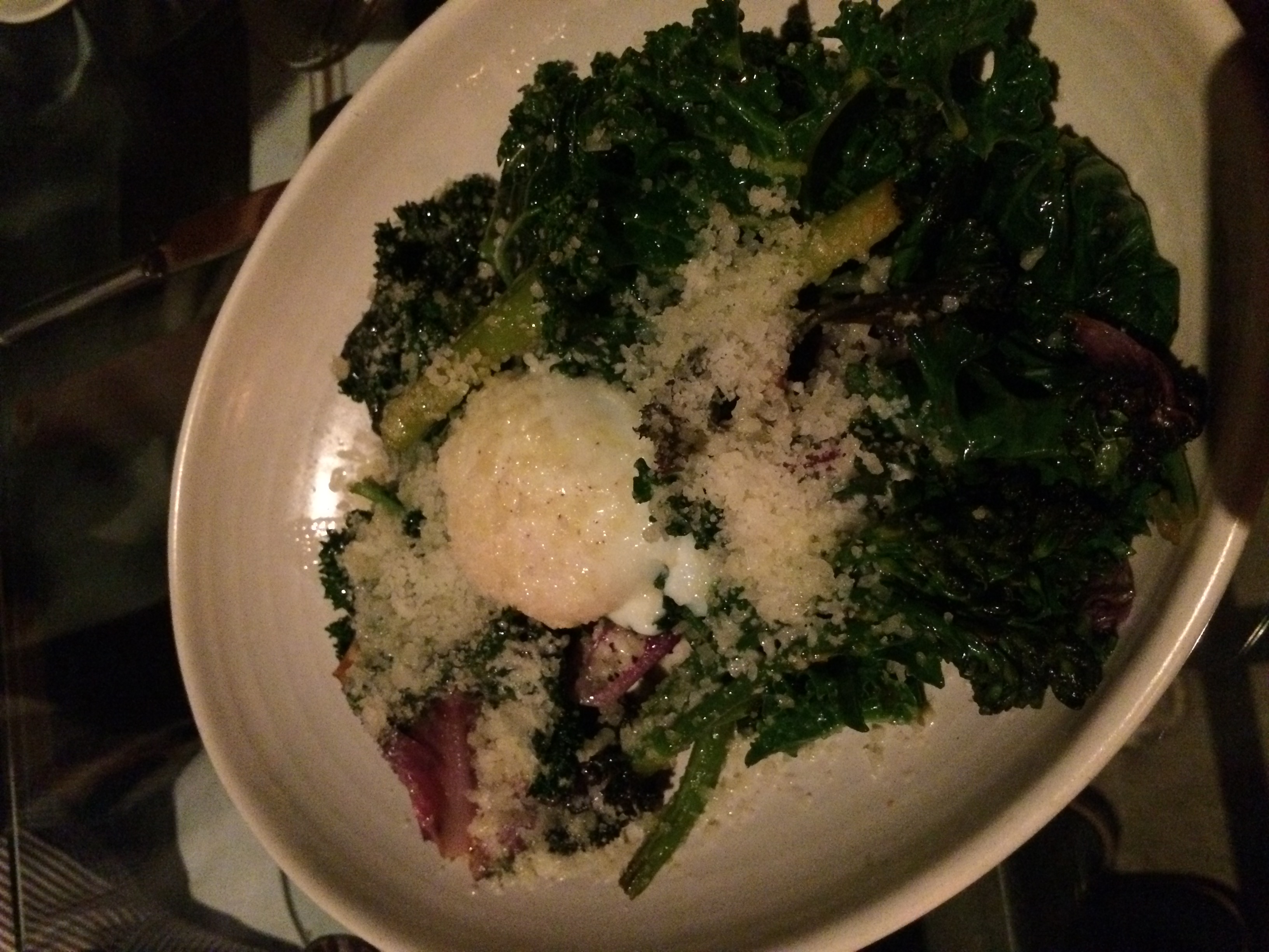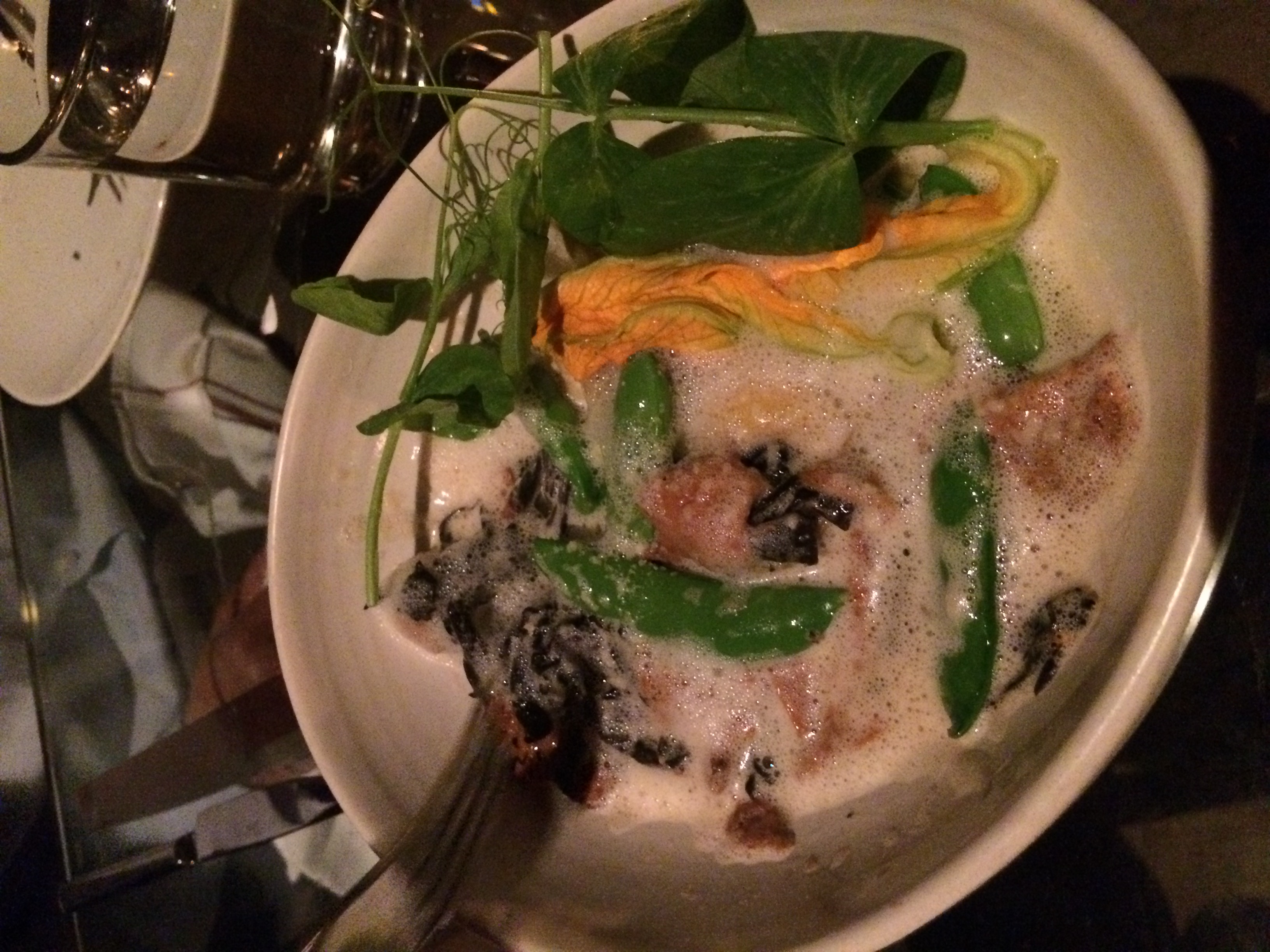 We finished off the meal with cavatelli with lamb belly pancetta, spring peas and crouton with pecorino, ricotta tortellini with snap peas, squash blossom and wild mushrooms. and finally, sautéed greens with machengo, siracha and soft egg. The pastas were prepared perfectly and the melange of flavors in each dish were a work of art!