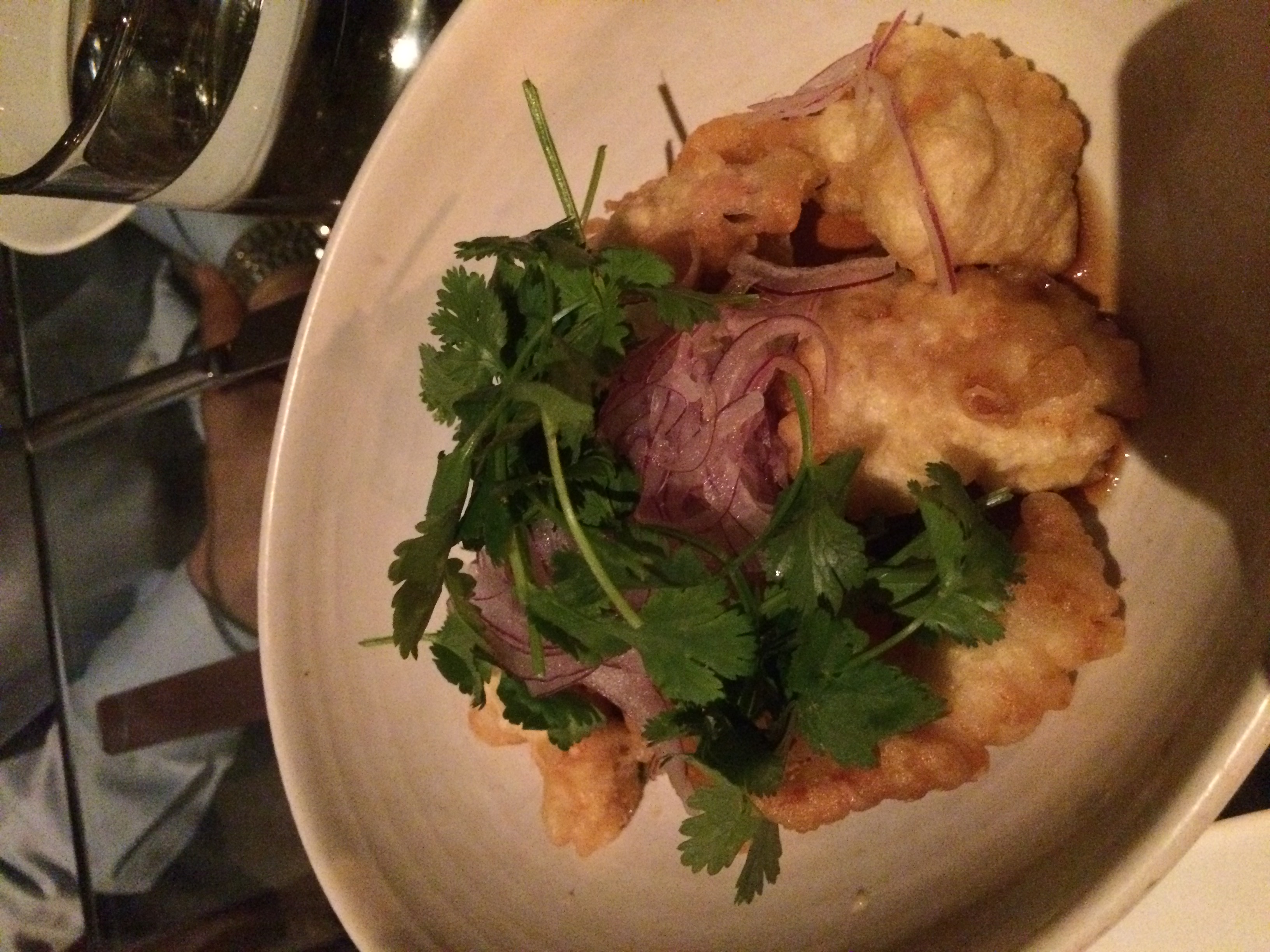 Our second round included a suckling pig larb “lettuce wraps” and fatty Alaskan king crab with long beans, bok choy and cilantro. It is always an adventure to try new things, and this was my first time trying larb (FYI, larb is a minced meat preparation that is considered the national dish of Laos). The spice combination was wonderful.