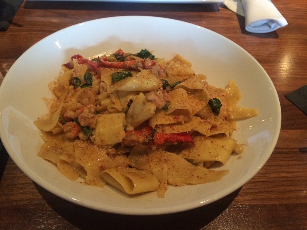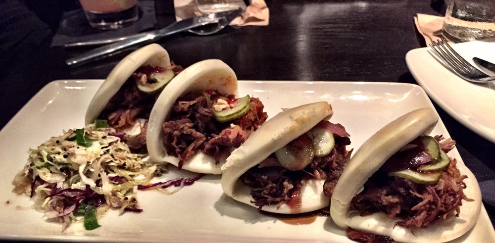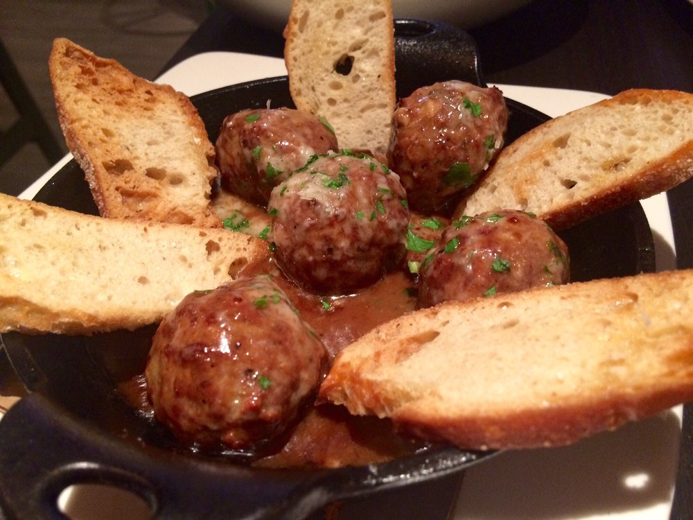 They have a nice wine selection by the glass and for the hot afternoon, I tried a lovely rose, and a light pinot noir. The bar menu offers lighter fare than the main restaurant, but two of the three items I tried were stand-outs! The Carnitas Bao Bao Sliders (which appears to no longer be on their menu) was one of my favorites. The light fluffy Asian buns provided a delicate platform for the beautifully seasoned meat. The Firecracker Shrimp was an interesting combination of a shrimp with an egg-roll casing, fried and served with a sriracha aioli. This wasn’t the most attractive plate they presented, but it was very tasty. The last thing I tried was the Bison Meatballs. These were served with a rich savory whiskey sauce with rustic crustini. Wow! The service staff said this was one of their most popular items and I can understand why.